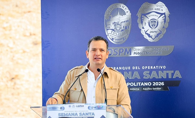 Ciudad de Chihuahua.- El alcalde Marco Antonio Bonilla Mendoza, encabezó el arranque del Operativo Metropolitano Semana Santa 2026, en coordinación con los municipios de Aldama y Aquiles Serdán, así como corporaciones de los tres órdenes de gobierno, con el objetivo de garantizar la seguridad de las familias durante el periodo vacacional.
