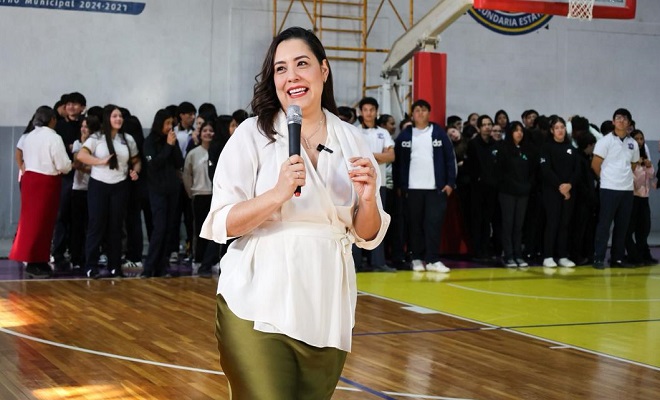 “Siéntanse muy orgullosas y muy orgullosos de pertenecer a esta secundaria porque de esta secundaria han salido grandes personalidades, grandes profesionistas y personas que le hacen mucho bien a nuestra capital, a nuestro estado, a nuestro país”, subrayó la integrante del Partido Acción Nacional (PAN).