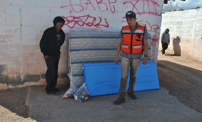 Personal del programa Chihuahua Vive de Secretaría de Desarrollo Social del gobierno del estado, llevó apoyo a una familia tarahumara que perdió sus pertenencias en un incendio registrado en su vivienda en la colonia Sierra Azul.