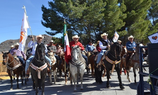 En el marco de las actividades del 1er. Aniversario del Centro de Equinoterapia “Yo levanto la mano por Ti” se llevo a cabo una nutrida y vistosa cabalgata. Con el tradicional juramento del jinete, se dio inicio a esta jornada en la que participaron decenas de jinetes locales y de otras regiones mismos que realizaron un recorrido de 15 km terminando en las instalaciones del Centro Equino, encabezando la columna de jinetes el Secretario General de la Sección 42, René Frías.