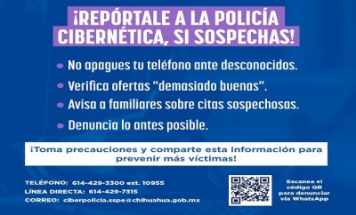 Chihuahua.- La Secretaría de Seguridad Pública del Estado (SSPE), a través de la Policía Cibernética, advierte a la...