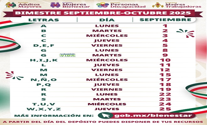Redacción | 1 septiembre, 2025Del 1° al 25 de septiembre se realiza la dispersión bancaria, de acuerdo a la letra del primer apellido....