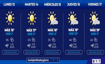 Ciudad de Chihuahua.- La Coordinación de Protección Civil Municipal informa que para esta semana se pronostican temperaturas máximas...