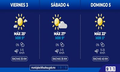 Ciudad de Chihuahua.- La Coordinación Municipal de Protección Civil, informa que para este fin de semana, del 3...