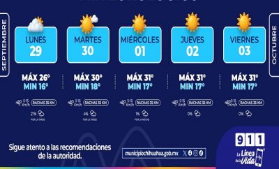 Ciudad de Chihuahua.- La Coordinación Municipal de Protección Civil, informa que para esta semana se esperan días templados...