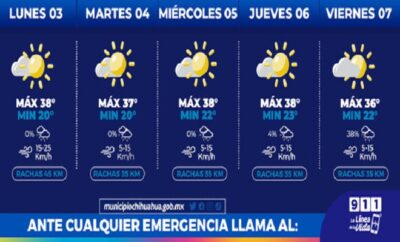 Ciudad de Chihuahua.- Para esta semana se pronostican temperaturas máximas de 38 °C, con mínimas de 20°C, por...