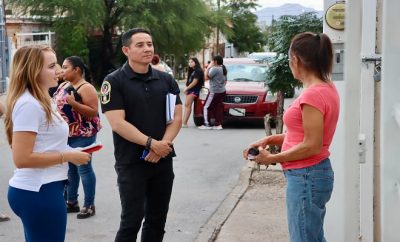 Chihuahua.- La diputada local por el Distrito 16, Carla Rivas, acompañada del director de la Policía Municipal, Julio...