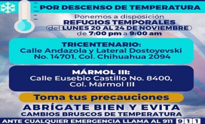 Redacción | 19 noviembre, 2023Abrirá Municipio refugios temporales por descenso en la temperatura