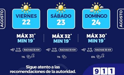 Redacción | 22 agosto, 2025Se pronostican días cálidos con máximas de 32°C este fin de semana